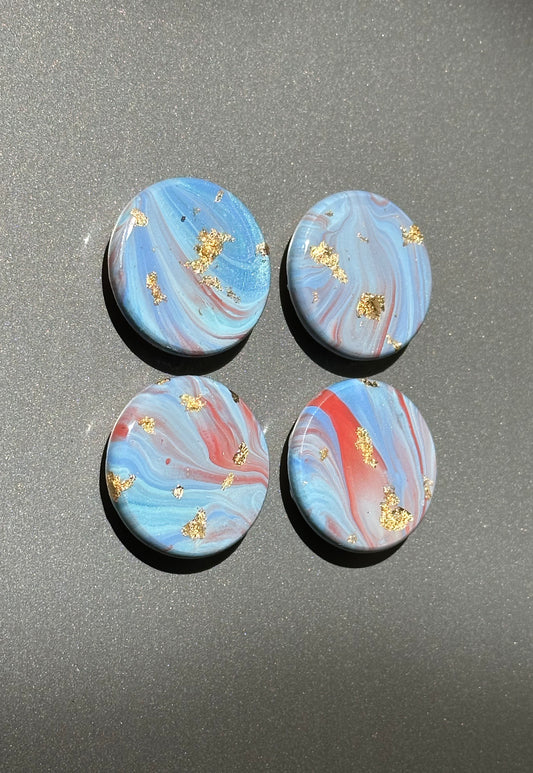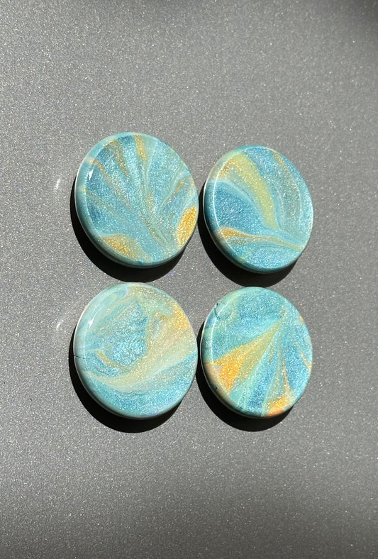 4pc Magnet Set - Blue/Coral+GoldFlakes