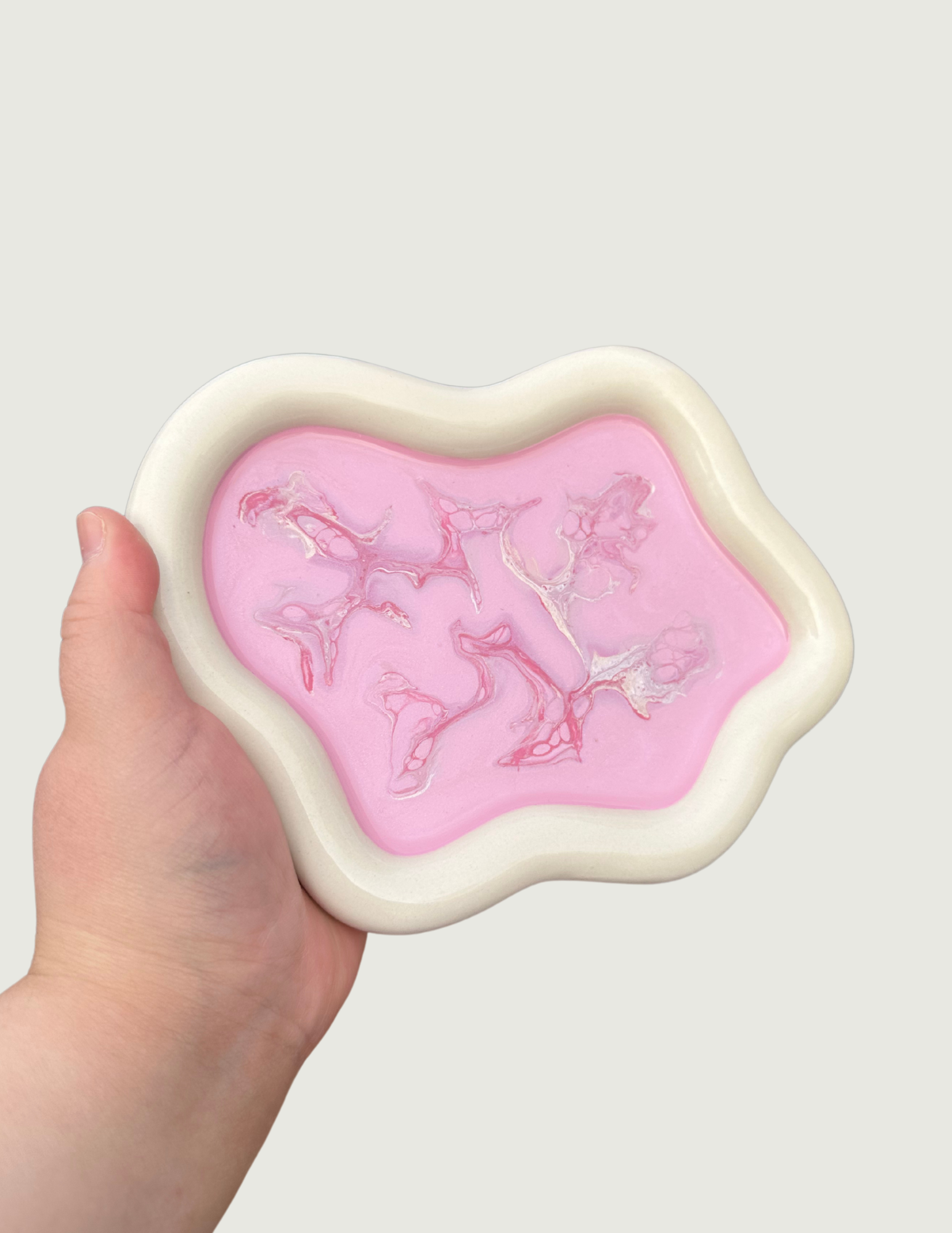 Cloud shaped glass trinket covered with a layer of epoxy resin